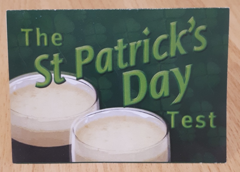 Tuesday was St. Patrick’s Day!  There was a team of two who spent two hours on our usual Riccarton outreach in the late afternoon, and then in the early evening we were outside two Irish pubs doing the St. Patrick’s Day test with people.