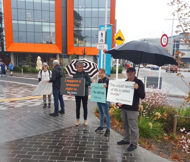 Firday’s outreaches started with the gospel + abortion outreach outside Christchurch hospital.  I’m grateful that Marty brought his umbrella and he allowed me to share it - it got quite wet (pictured).