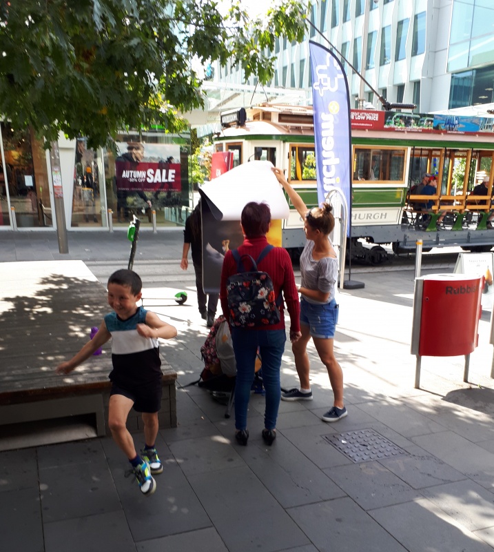 I then moved to Cashel Mall with my flip chart, and met Roger there.  Compared to the Square, there were heaps of people!
