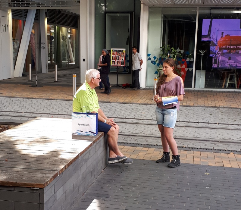 I had a quick conversation with a Christian guy before deciding to move to Cashel Mall.  By this stage, the wind had become strong, and so I decided to ditch my flip chart.