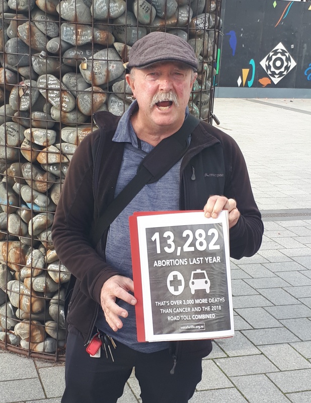 After that, I noticed a solitary lady had turned up to protest the recent liberalisation of abortoin law in NZ - she had a sign.  I said hello.