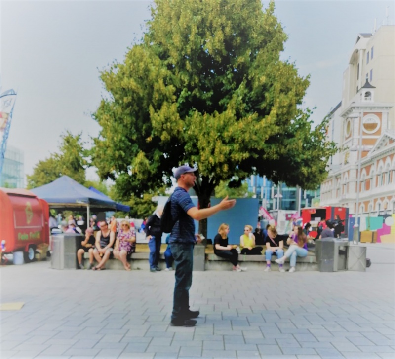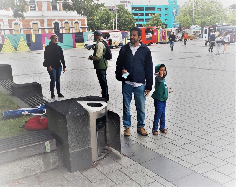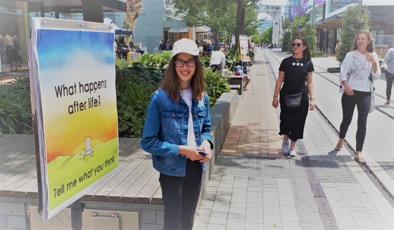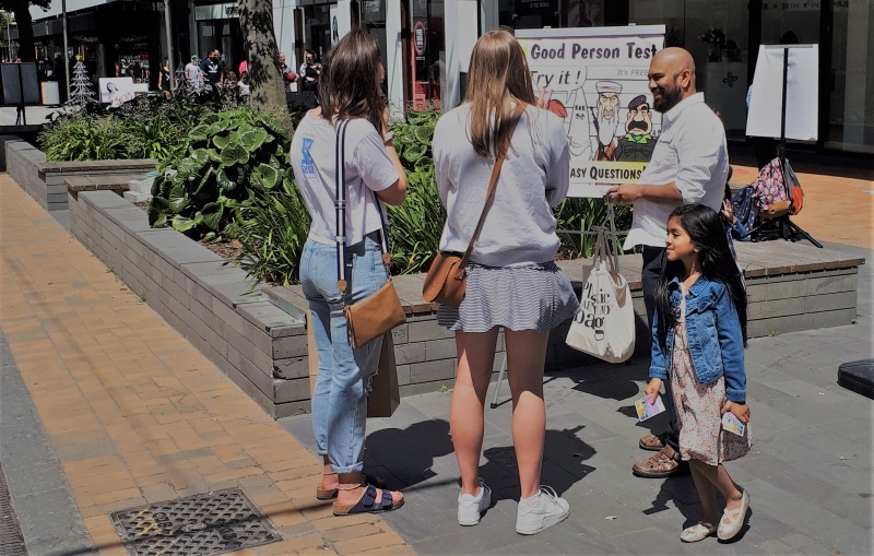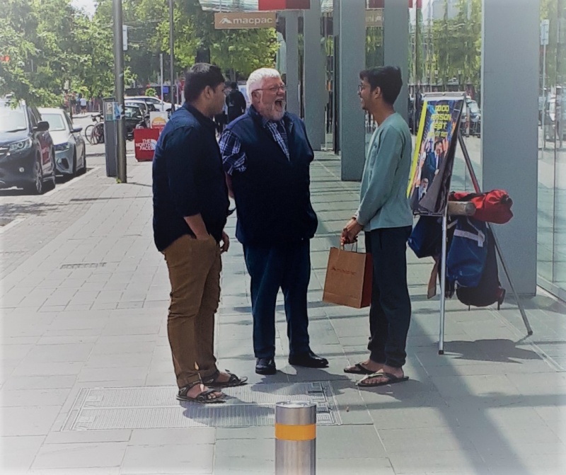 In the afternoon, we were at the corner of Cashel Mall and Colombo Street. I got into a gospel conversation with a lady handing out flyers for Uber Eats. She had listened to many of my gospel conversations on Wednesday, and had received a tract. But now I was able to talk with her directly.