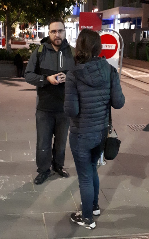 Friday saw Andy get back on the box, after he was attacked 2 weeks prior, before the team moved to Cashel Mall for 1 to 1 Gospel conversations and tract distribution.