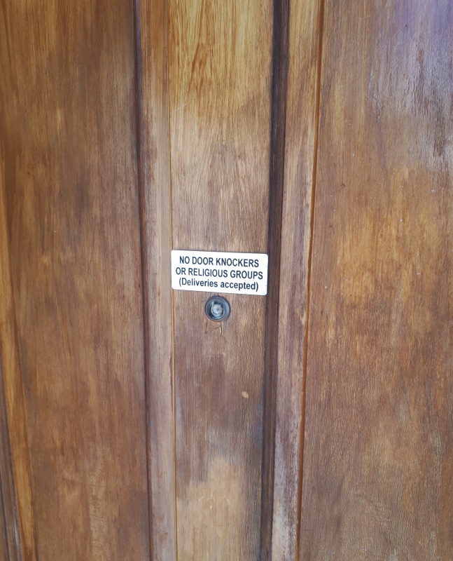 But externally I ignored it and quickly asked if he would be keen to discuss.  He said, “I’ve got my own beliefs thanks”.  It struck me that that is exactly what Christians often say to religious groups coming to the door.  The roles were reversed!
