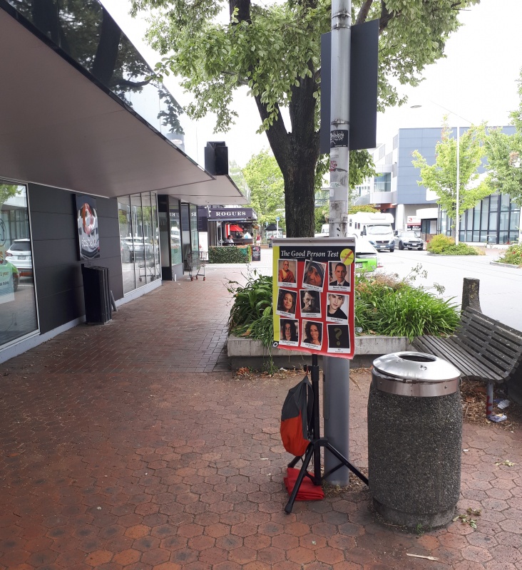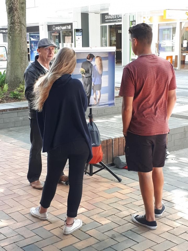 The outreach finished in Cashel Mall with flip chart gospel conversations.