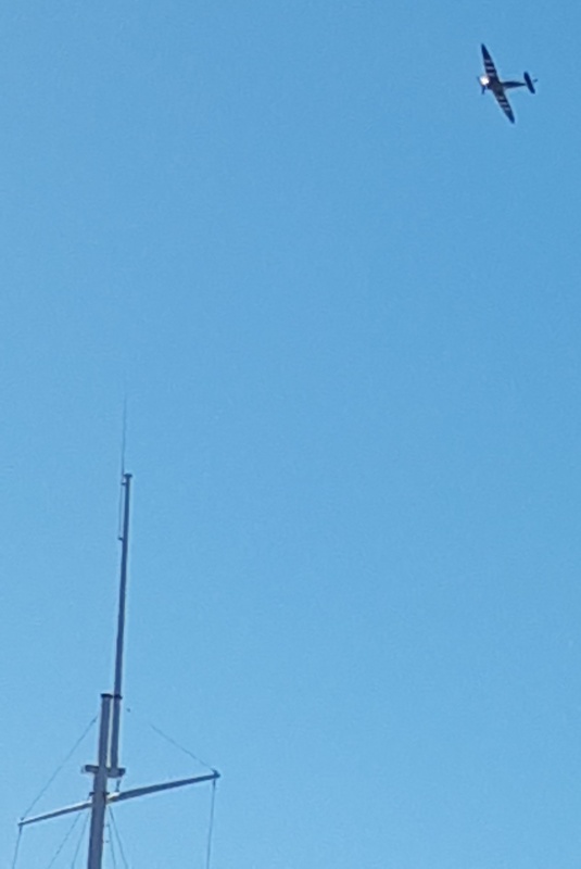 At the Sumner beach outreach, in the afternoon, some good gospel conversations were had.  One of them started as people were watching a World War 2 British fighter plane flying overhead (see picture).  As it flew past, I asked 2 guys on bikes if it was a Spitfire.  This led, eventually, to a gospel conversation!  They both received follow up tracts as well.