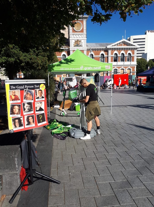 On Friday, the team were in the central city.  Air NZ were having a give away in Cathedral Square and this attracted many people to also have gospel conversations.