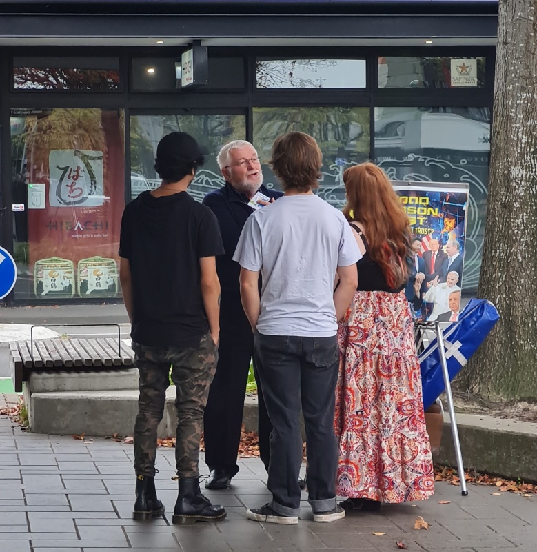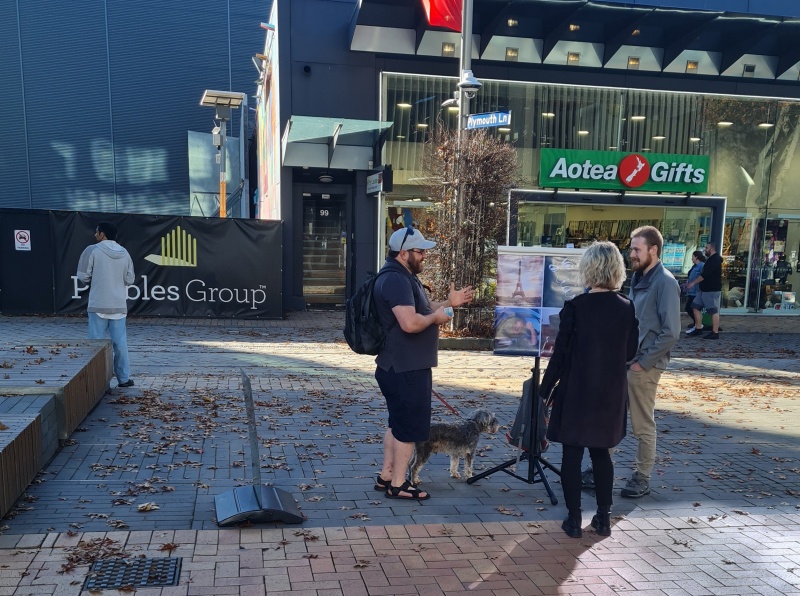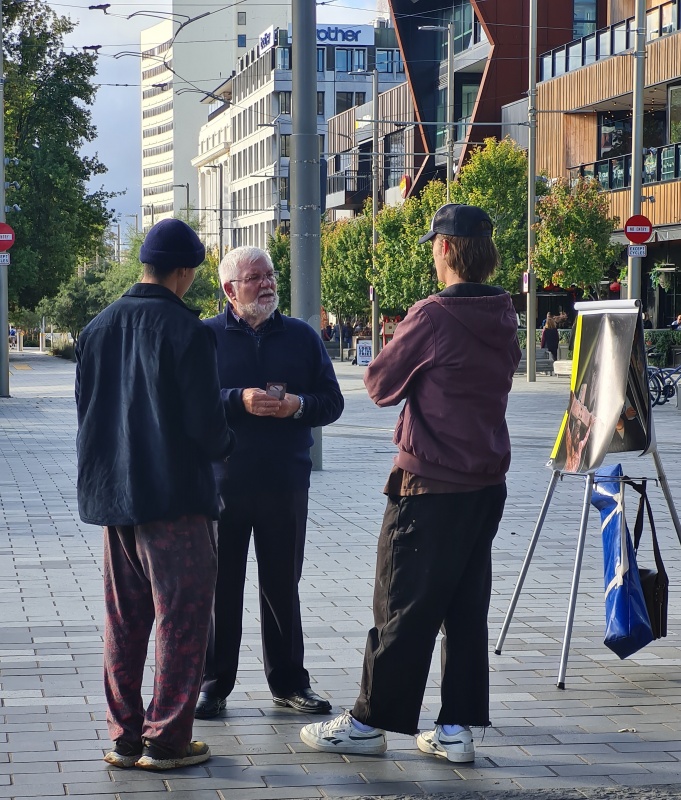 Saturday’s outreach to Riccarton was busy and interesting too. The first thing I noticed was that the JWs had set up not far from where I usually set up (pictured)! They are becoming more active again, post Covid.