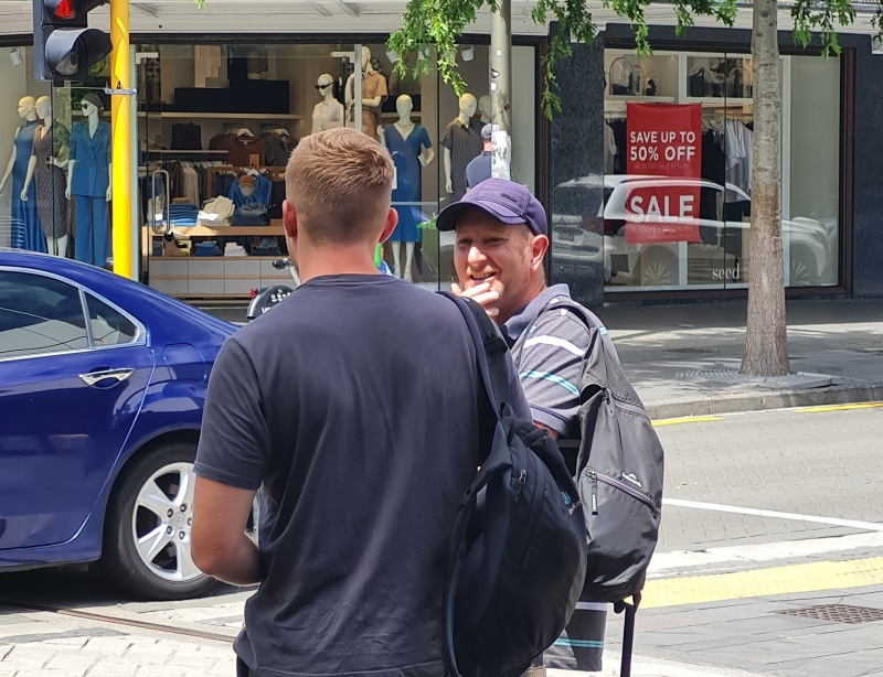 On Friday, I was on my own initially, so I decided to wander around the inner city to see what gospel opportunity I could find. I ended up in Cathedral Square where a group of construction workers working on the Cathedral repair were taking a break. I approached 2 of them and started a conversation. Soon after I was interrupted by one of the other workers across the way who was listening - she had a few things to say on the matter. I engaged her till she said she didn’t want to talk about it any more. So, I went back to the original 2. But, not long after, the lady across the way decided to interject again! Quite a few of the workers got involved in the conversation - it was quite funny, but a bit disjoined. In the end I decided to hand them all tracts and move along - their break was about to end anyway. But I was encouraged, I hope I’ll have an opportunity to engage with some of them again.