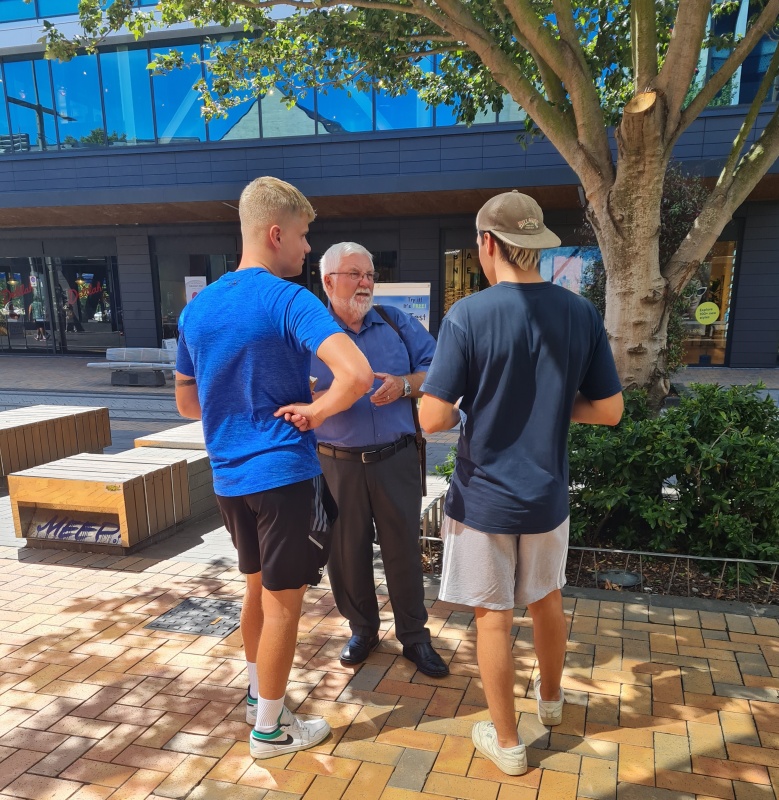 It was a wonderful outreach on Tuesday. My first conversation was with 3 senior high school guys. 2 of the guys believed in God, but the other didn’t, so I started with explaining who God is. They were open and the conversation went smoothly. The 2 guys made professions - so I got them to consider the cost. Where the ‘atheist’ seemed genuinely appreciative of the conversation: “I’ve never heard that before”. Very encouraging. As I was talking to them, another group of about 5 or so guys from the same high school went past (they were juniors apparently). One of them in particular was ‘hostile’, but as I was already in a conversation I couldn’t engage.