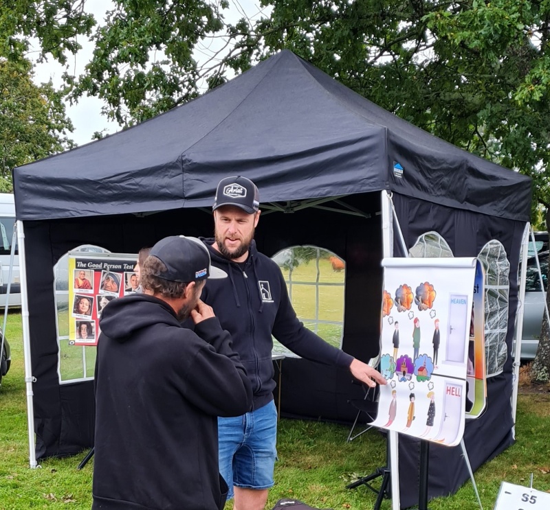 The Oxford A&P Show outreach was a long and busy day of outreach. A bit slow at the start, and at the end, but really busy in the middle. A good solid team of Christians ran the site, I think exclusively made up of members or prospective members of Redemption Church.