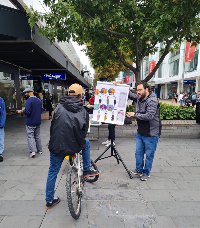 Saturday I was on my own in Riccarton, but it was a wonderful and busy outreach. It started with a brief chat with a young Muslim. Before Matthew, who I talked to the week before, came past again. Being a Christian, we ended up discussing predestination - a difficult subject that Christians wrestle with.