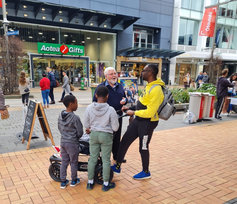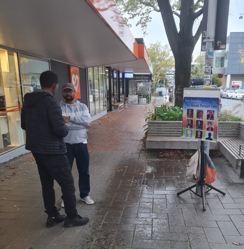 It was so good to be in the Philippines to share the gospel with the church there, but it’s also so good to be home. This week I was on the streets in Riccarton on Tuesday afternoon, and in the City on Friday afternoon. I wasn’t able to make it out on Saturday (wedding: congrats Toby and Mel!) or Sunday (family get together: Rach is home!), so this will hopefully be a briefer report than usual.