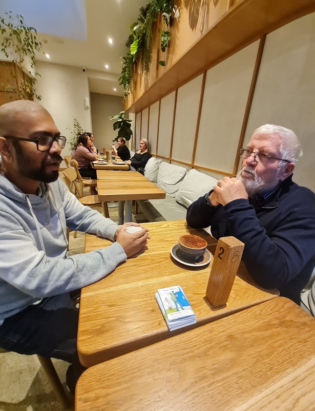 It was good to be able to have a hot chocolate with Roger after the outreach, and debrief a bit with him.