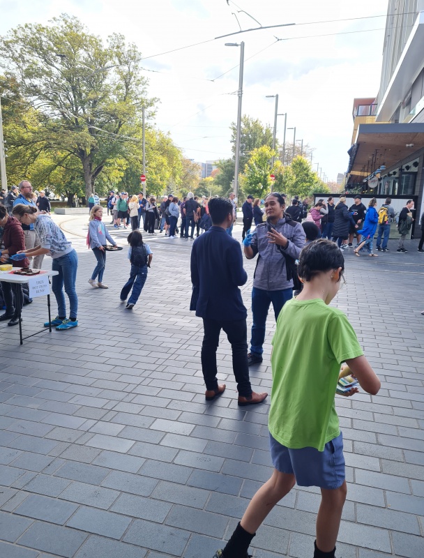 And finally, I want to mention the Easter Monday outreach. A cruise ship was in, I heard someone say over 4000 people were in Cashel Mall! 800 tracts were distributed + all the hot cross buns. (And 600 tracts were distributed on Easter Saturday.) I’m out of time to talk about it, so I’ll let the pictures do the talking!