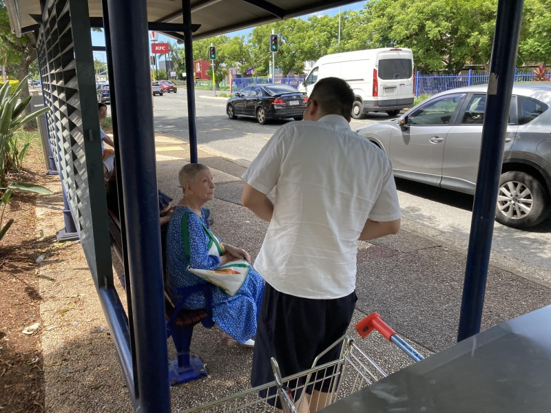 Thanks God, Qin Hao was able to team up with Hung to do this committed regular street outreach at Sunnybank. The Heat wave returned after a downcast day yesterday. But the grace of God was sufficient as the temperature was still reasonable not that hot as usual because of the ecology setting around the bus stop with many shaded areas created by the building and the trees around. In term of outreach, it was a day of mixed result. The negative experiences however were from the those who declared themselves Christian. They behaved very erratically hash with suspicious mindset to resist any discussion on religion as if they are gentile or non-believers. I can only pray that God may have further alert message to wake them up from the self-cozy feeling illusion.