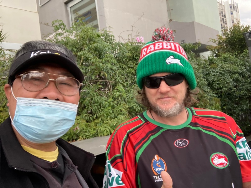 1 ) Stephen is a local Aussie but had been to China three years ago before the pandemic. He was wearing a T shirt with the Shao Lin Ji logo and the 18 martial arts warriors that used to be the mentor of Shao Lin to test the Gongfu graduates if they can fight their way out to be a formally successful graduate. With his Gongfu loving attitude, I of course can easily catch up with him to share the Gospel. He possibly might think that my gospel message is likable with Chinese Culture favour. I any how stress to him that even the Gong fu master that are regarded as a people hero like th American captain, none of them are perfect that all human races are sinners that need the redemptive grace of Jesus. He anyway appeared quite receptive and happy to take selfie with me.