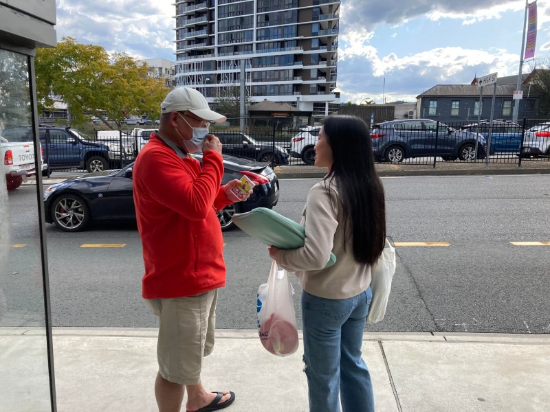Despise the resurging of Covid19 cases, the three of us, Johnny, Winnie and Hung remained committed to do our weekly regular outreach Tuesday at Toowong. It seemed that UQ is still at term break, so there were less people flow at the Bus Stop 14. Nevertheless, all of us still have numerous divine appointments to share gospel to people of all different nations. Recap below are the Battle Log of Hing and Winnie: -