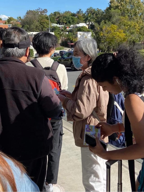 Praise be to God we had Alfred, Ka Fai Yau from Sydney joining us making a team of four. Alfred is the Asia Mobilizer of the African Inland Mission. He also runs his own Network Mission and want to connect with Brisbane Co-workers to have a glimpse of what we are doing in the cross-cultural evangelism aspects. Therefore, I invited him to come along to have a go. There were overwhelmingly large people flow with a long queue for the bus that presented a mixed situations that was good to have more outreach targets but meantime we would face a larger reject rate as one rejection will cause repercussion effect leading all people around also inclined to follow suit to reject our approach.