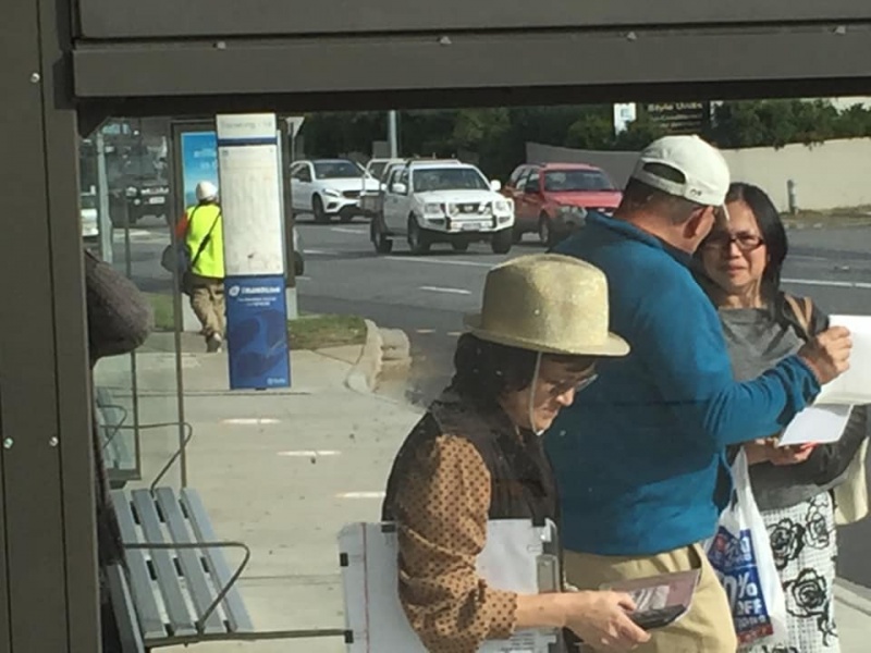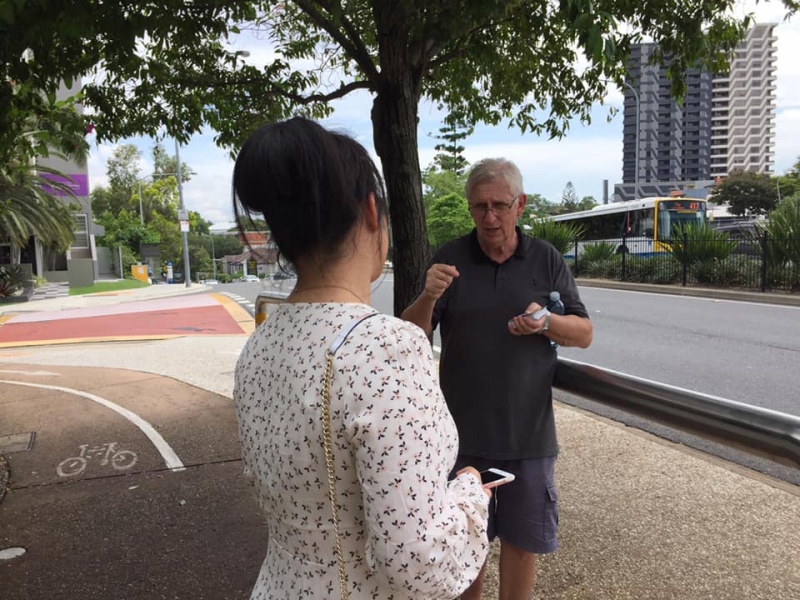 Praise and thanks God that a team of five was gathered today for the second week of returning to the street in Toowong. In addition to Johnny the leader and me, Hung, we had Col, Gary and Winnie rejoining force with the Toowong team. And the hustle created by the closure of the Bus stop was removed as it is now reopened so that Winnie can station there to get many good chats. Please refer to her sharing in Chinese below(*). Basically she had three completed conversations with three UQ students Danial, Renee, & Alice by using the "Good Person" flip chart and a few more incomplete approaches being cut short by the arrival of the bus. It was really a good encouragement for her after such a long suspension of ministry.