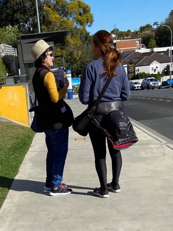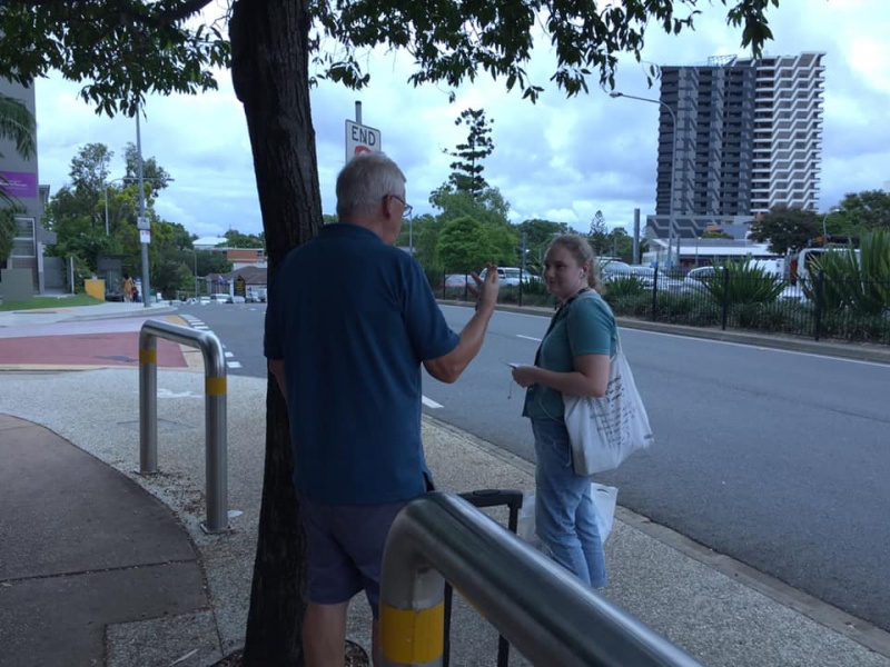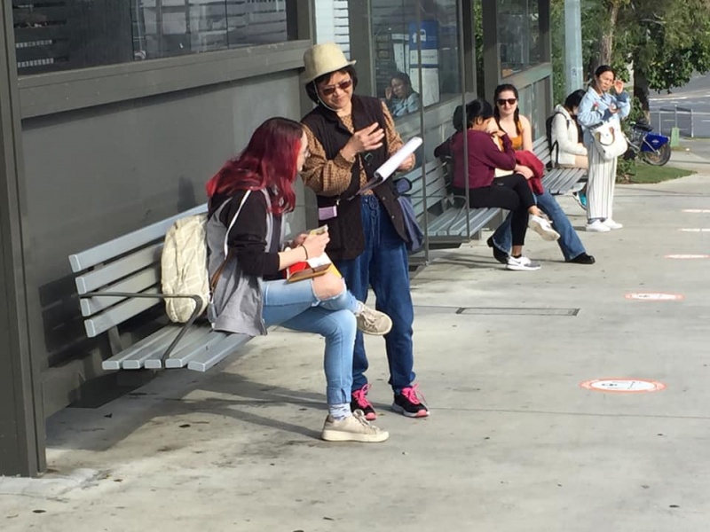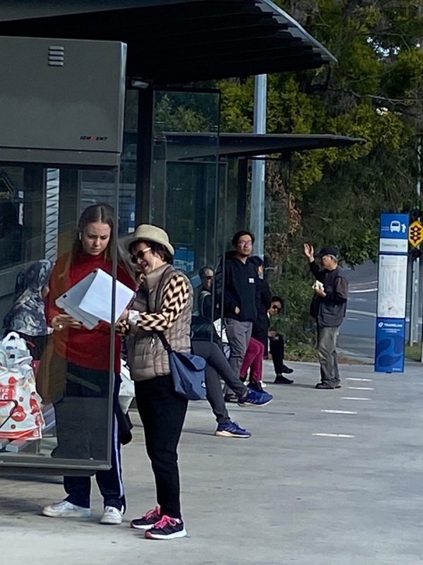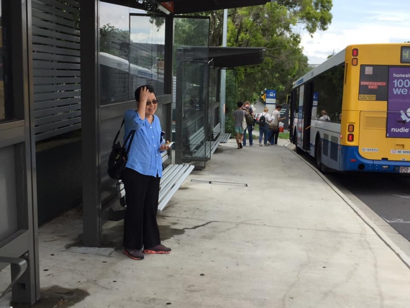 5) A local Aussie girl was willing to chat at the first temporary bus stop and appeared receptive. She missed the bus despite waving to stop the bus. She anyway did not complain and chose to walk home.