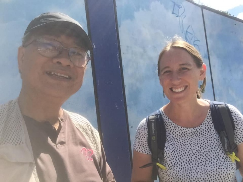 1) My first gospel target was Michael, an Aussie of Catholic background. He was wearing a T shirt too thin for the windy condition. But he willingly stop to chat with me by removing to a less windy spot. We had a long chat that helped clarify all the misconception in his Catholic upbringing that he is saved by grace through faith alone in Christ. He was so appreciative for our talk that willingly he agreed to take a selfie with me.