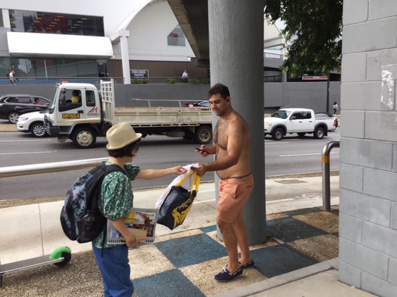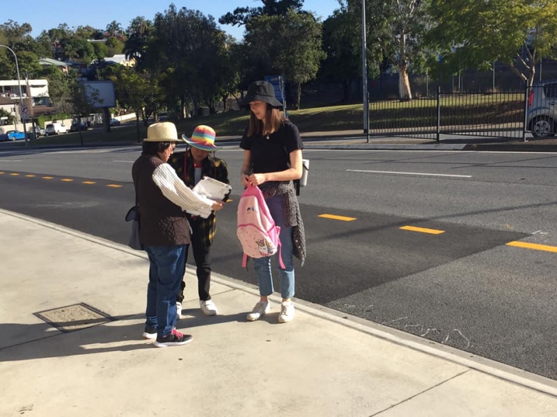 Meets 1:30-3pm every Tuesday afternoon at the Toowong train station on the 2nd floor and splits into two teams, one at the main entrance of Toowong Tower on Sherwood Road, another at the foot of the pedestrian bridge across Benson Street.