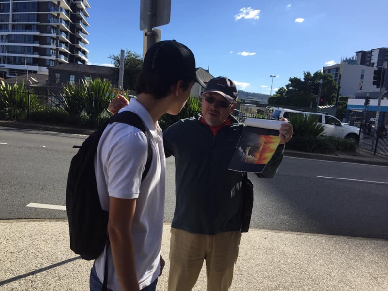 Johnny chose to serve alone at the other side of the Toowong Village near the Front Main entrance. He had one good full conversation also using the flip chart. He knew how to wait before God in whatever circumstances.
