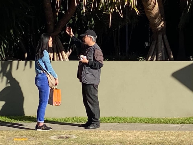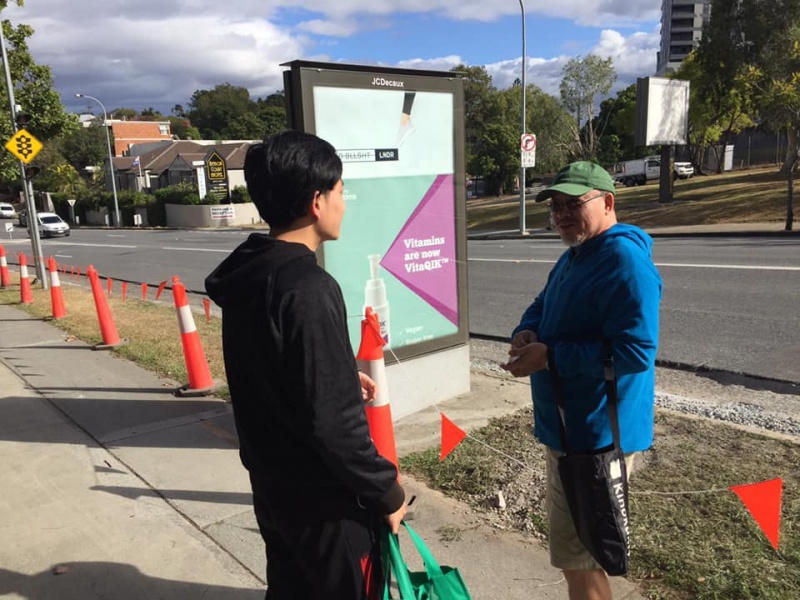 Praise and thank God we resumed our Street Evangelism after a pause for 14 weeks because of Covid-19. The scenario of gospel sharing opportunities are different because of two major impacts: 1) the relocation of the bus stop to UQ to a temporary location losing for us a concentrated spot for long conversation. We have to grab opportunities by stopping people on the street. 2) Students are in general not in a great hurry as they now have no class but all switched to online study. They came to Toowong mainly for shopping.