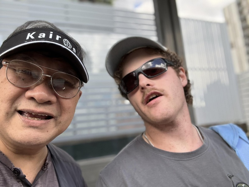 6) Then caught up with Hayden who is from Grenville of the Sun Shine Coast. He is also non-religious but paid full attention to the gospel message showing full openness and receptiveness at the end with a selfie showing his appreciation for sharing such important message with him.