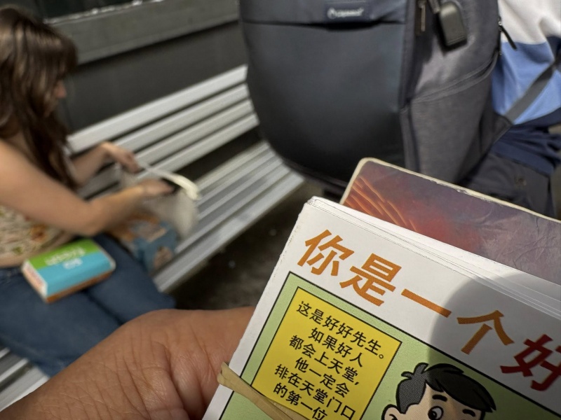1) I was moved to approach a young man from Beijing 北京 but live at outskirt near Tianjin 天津who came to study IT 電腦. He has a rational mind and appeared receptive to the gospel message.