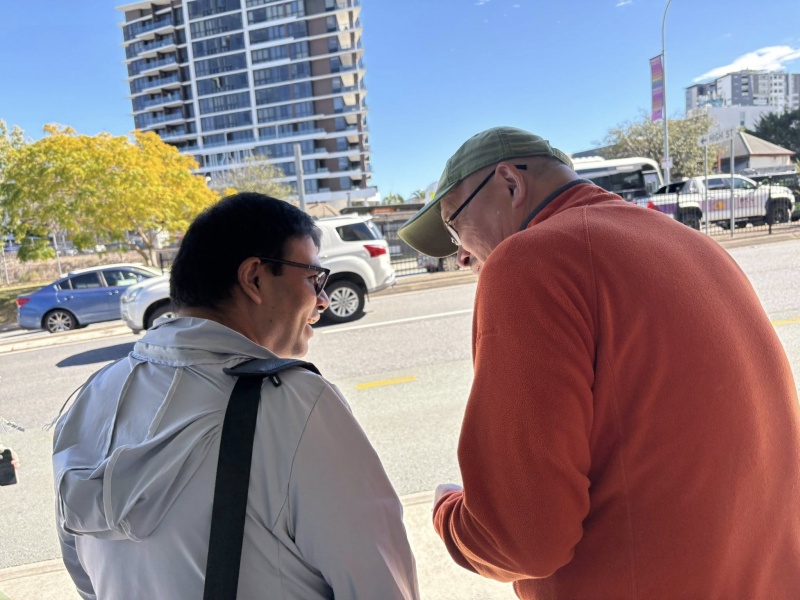 Johnny joined me again at Toowong after his overseas trip back to Brisbane. It was a fine day to Johnny as compares to the hot and timid whether in Taipei. Both had many divine appointments sharing gospel to people of all Nations including New Zealander, Mainlander Shanghai girl, Hong-Konger cap, Malaysia Girl , James from the Gold Coast and Carolina from Portugal. All of them appeared open and receptive though all of them are non-believers.
