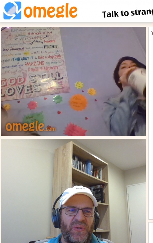 Today (Wednesday), my first conversation was with a 14 year old “pastor”! There was a problem with his mic, and I couldn’t hear him, nor him me, so we reverted to text chat while being able to see each other: