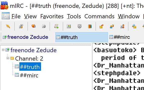 After that, I decided to investigate other ways of doing evangelism online. Over twenty years ago, before I was a Christian, and in the early days of the Internet, I used to use a thing called Internet Relay Chat (IRC). I decided to look into this again, and I found a channel on the freenode network called “truth” - a place where people can talk about politics and religion. It had been a long time since I used IRC, so I had to spend some time getting up to speed.