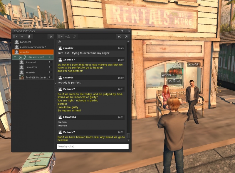 To finish off the Sunday outreach I jumped on to IRC again, and I was able to reconnect with the Christian I had encountered the first time I signed on (about three weeks ago) - we are now Facebook friends.