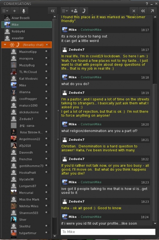 I then went to a web site that facilitates starting one to one conversations (via text): https://www.omegle.com/.
