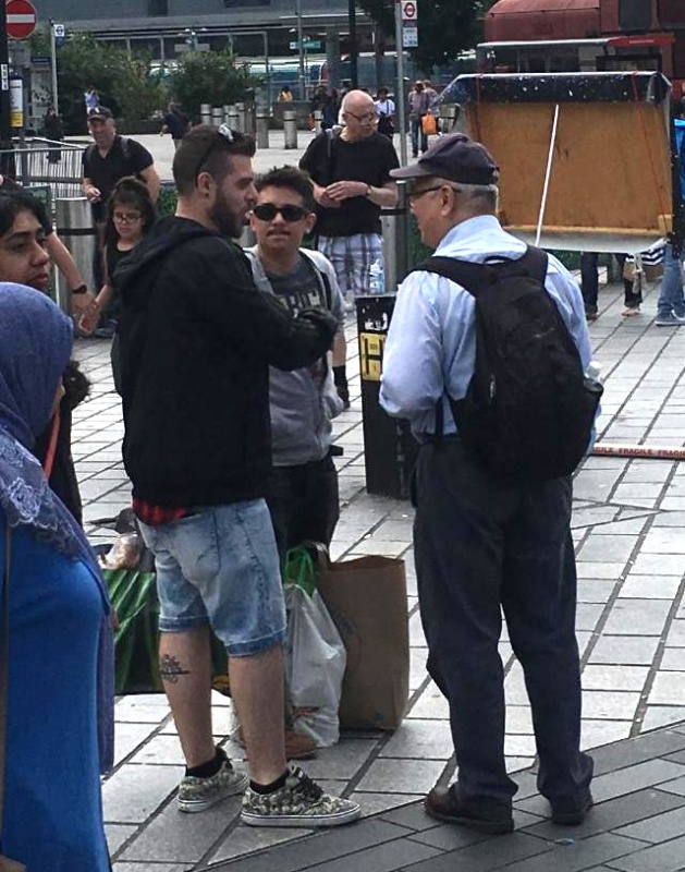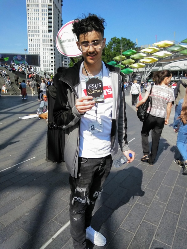 Mohammed kindly posed with a Jesus and the Quran tract that he took from me. Andy Noble had a number of conversations over the course of one and a half hours.