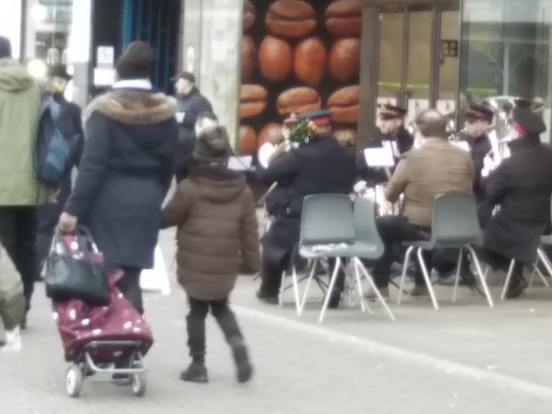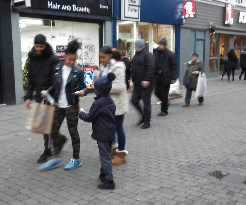 Operation 513 was out in Romford on the Highstreet this afternoon for outreach. The weather was mild with some sunshine breaking through. The crowds were pretty good and the Salvation Army played Christmas songs in front of the M&S until 3:30. A conservative politician was also looking for votes for the upcoming election on the 12th. A Japanese journalist asked me what I thought about the vote, but I told him that I can't vote. He and his crew did take a tracts at least.
